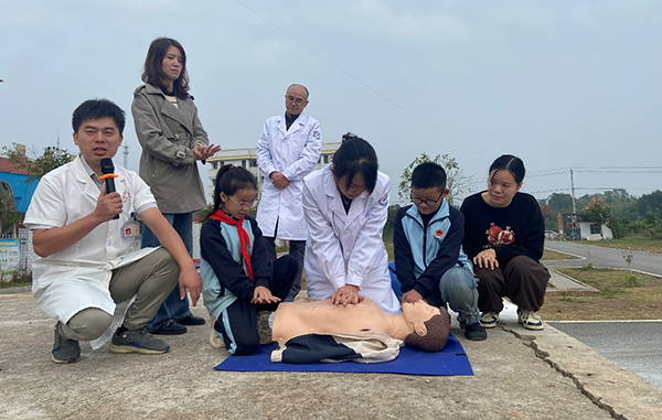 在急救技能培训环节,医务人员演示心肺复苏和海姆立克急救法的操作流程后,指导师生代表练习胸外按压,体验海姆立克急救法的规范动作。“这是我第一次亲手做心肺复苏。”五年级学生江梓航兴奋地说,“虽然很紧张,但我记住了急救的重要步骤,我会和家人分享今天学到的知识。”