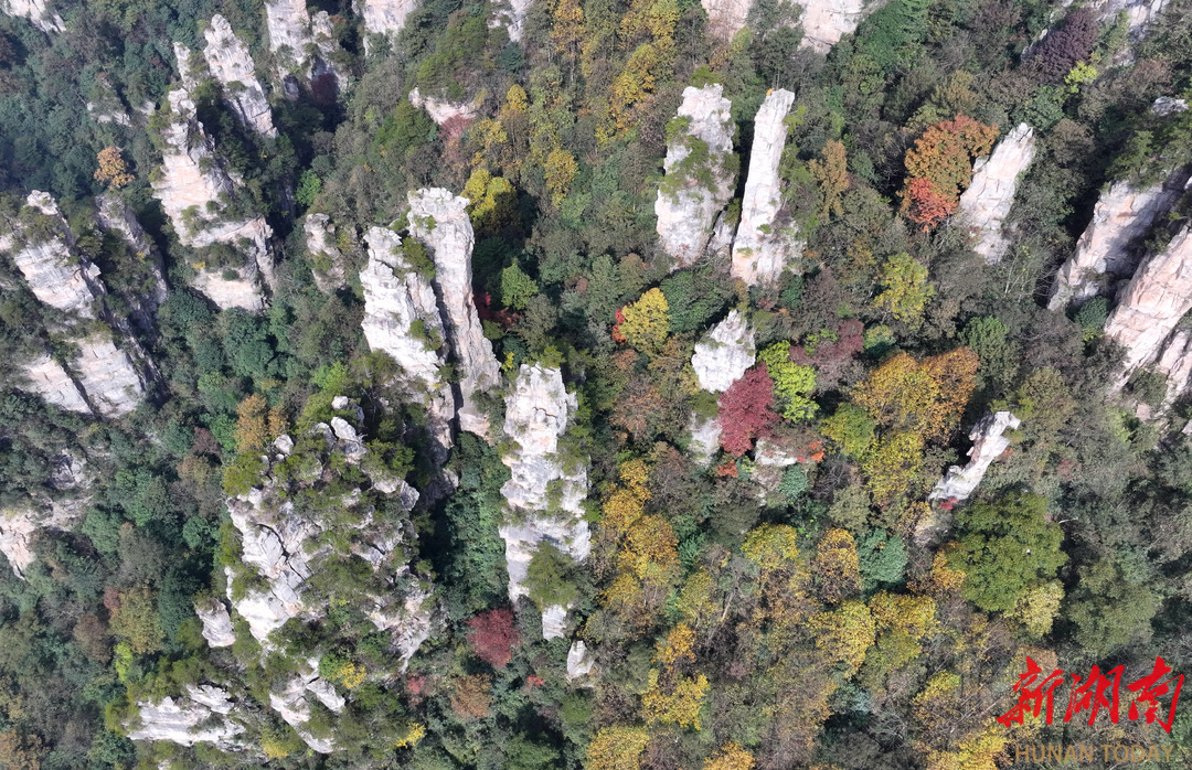 11月4日,湖南张家界国家森林公园天子山景区,层林尽染,色彩斑斓,恍若一幅幅秋色油画。通讯员 吴勇兵 摄影报道