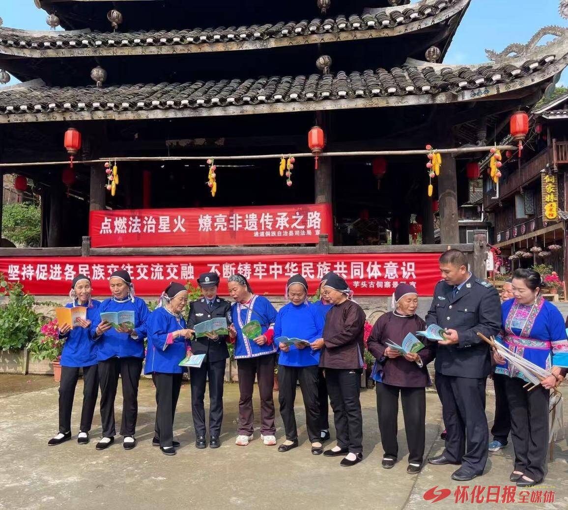 非遗融合开辟“新路径”。在鼓楼设立“四碗油茶解纷角”,邀请“歌师”现场弹唱《侗乡婚育新风尚》《宁暗乃赖齐对夫》等侗族大歌,以歌叙理、以理服人。运用“月也”“坐妹”习俗,在琵琶歌伴奏下,将“家庭是幸福的港湾”“团结是家庭的根基”等理念深入人心,以文化感染力引导当事人反思自身行为、珍惜家庭情谊,从“要我和”转变为“我要和”。创新打造“侗锦织情”工作坊,邀请纠纷夫妻共同参与象征和解的“同心锦”编织。在丝线穿梭、经纬交织的协作过程中,引导双方放慢情绪、敞开心扉,通过指尖互动回忆相处温情、化解隔阂分歧,在传统技艺的浸润中修复婚姻情感、重拾彼此信任,让文化赋能婚姻调解。将《反家庭暴力法》等婚姻家庭相关法律法规,巧妙融入生活化剧情,创编《婚姻新办》《家庭风波》等系列侗戏。今年组织文艺骨干深入各村寨开展巡演170余场,以生动演绎替代生硬说教,覆盖群众6万余人次,让普法宣传更接地气、入脑入心,筑牢婚姻家庭法治根基。