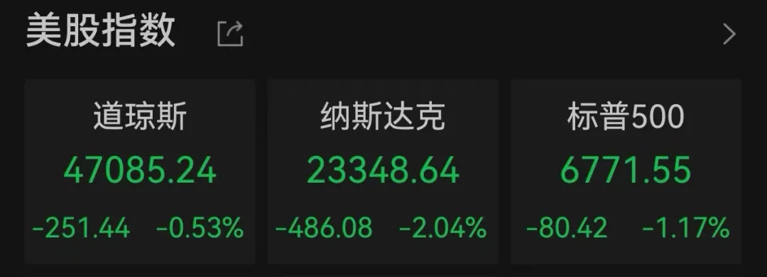 当地时间11月4日,美股三大股指全线下跌,风险偏好回落。截至收盘,道指、纳指、标普500指数分别下跌0.53%、2.04%、1.17%。