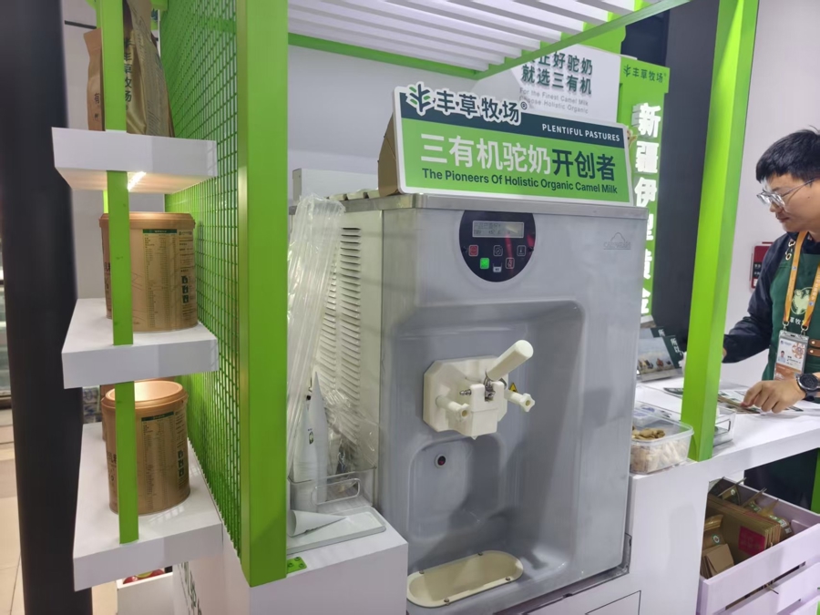 “这里在排队等什么?”在新疆馆的门口,走过路过的展客商看着门前的长队好奇发问。原来是伊犁丰草牧场带来的“进博会限定”驼奶冰淇淋和“三有机”纯驼奶粉。丰草牧场品牌合伙人刘天晏表示,展会期间前来参观的观众可以免费获取驼奶冰淇淋和驼奶粉试饮。