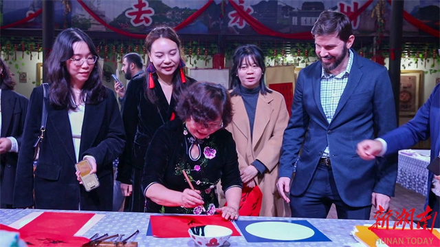 A "Foreign Experts' Visit to Yongzhou, Hunan" event was held in Jiangyong County on October 30. Foreign experts based in Hunan gathered at the Goulan Yao Village to experience firsthand the unique charm of Jiangyong Nvshu women's writing and culture traditions, a national intangible cultural heritage item, and to appreciate the cultural heritage and developmental vitality of the Jiangyong area.