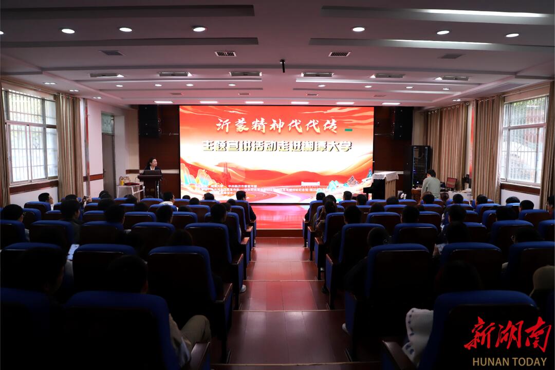 湖南日报·新湖南客户端11月5日讯(通讯员 程芝仪 蒋倩宁 彭阳亿)11月4日,“沂蒙精神代代传”主题宣讲活动在湘潭大学举行。由华东野战军总部旧址暨新四军军部旧址纪念馆—临沂大学国家革命文物协同研究中心打造的音乐思政课《歌声里的沂蒙精神》在艺术学院学术报告厅精彩上演,一场跨越千里的红色对话,让沂蒙精神与湘潭红色基因相遇共鸣。校党委副书记肖志伟出席活动。