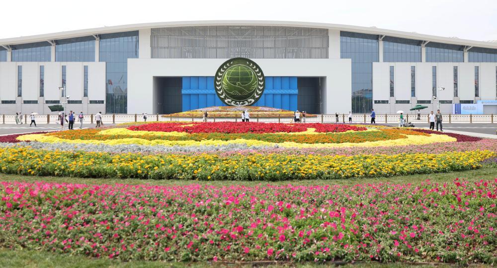 这是8月30日拍摄的2025年上海合作组织峰会主会场外景。 新华社记者 孙凡越 摄