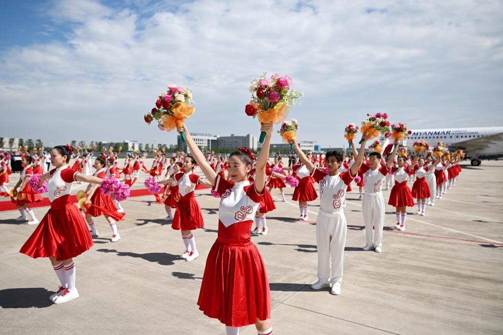 8月30日,工作人员在天津滨海国际机场迎接参加峰会的嘉宾。 新华社记者 郝源 摄
