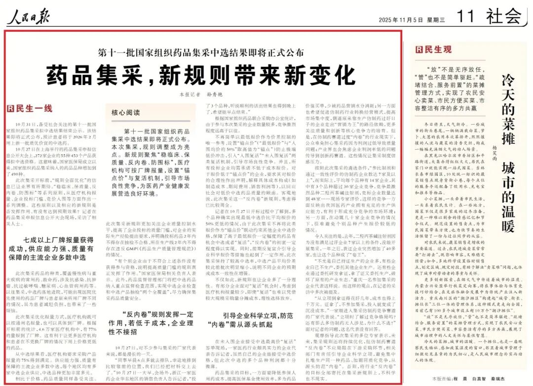 第十一批国家组织药品集采中选结果即将正式公布。本次集采,规则调整成为亮点。新规则聚焦“稳临床、保质量、反内卷、防围标”,医疗机构可按厂牌报量,设置“锚点价”与复活机制,引导市场良性竞争,为医药产业健康发展营造良好环境。