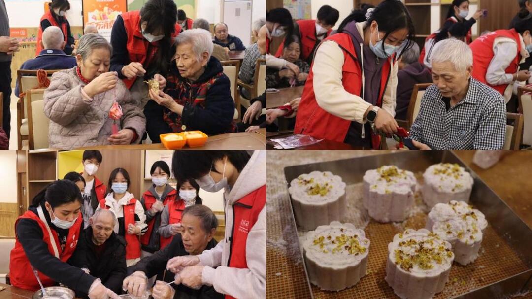 香囊传情,糕甜入心。志愿者们协助养护院社工,提前备好艾草、茱萸、薰衣草等重阳传统安神香料,以及蒸制好的桂花糕,手把手引导老人参与体验。制作香囊时,志愿者们细致示范每一个步骤,老人们专注地跟着操作,指尖穿梭于针线间,一个个饱满馨香的香囊逐渐成型,他们脸上也露出了欣慰的笑容。花糕制作现场更是热闹温馨,志愿者与老人们一起揉面团、压花型,活动室里弥漫着桂花的清甜与欢声笑语,“孩子,你尝尝我做的这个味道怎么样?”一位奶奶拉着志愿者的手说道。老人们一边品尝传统美食,一边叙说往昔趣事,活动室内洋溢着节日的温暖氛围与浓浓的幸福感。