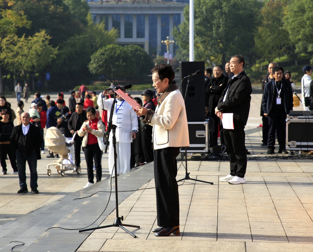 在经久不息的掌声中,县老龄工作委员会常务副主任夏玉珠走到台前。她充满着激情,如数家珍般娓娓道来:“看见你们红润的脸庞、挺拔的身姿,我就想起了几年前刚开始推广八段锦时的情景。那时很多人说,老了还折腾什么?可现在——”她环顾台下六百张面孔,“你们用行动告诉所有人:衰老不是退缩的理由,而是生命另一段华章的开启!”她还语重心长地说:“我真诚地希望兄弟和姐妹们以这次活动为契机,鼓励更多的老年人走出来、动起来,乐起来!……”她的话音未落,台下的欢呼声,掌声汇成一片,响彻云霄,在广场上空久久地回荡。