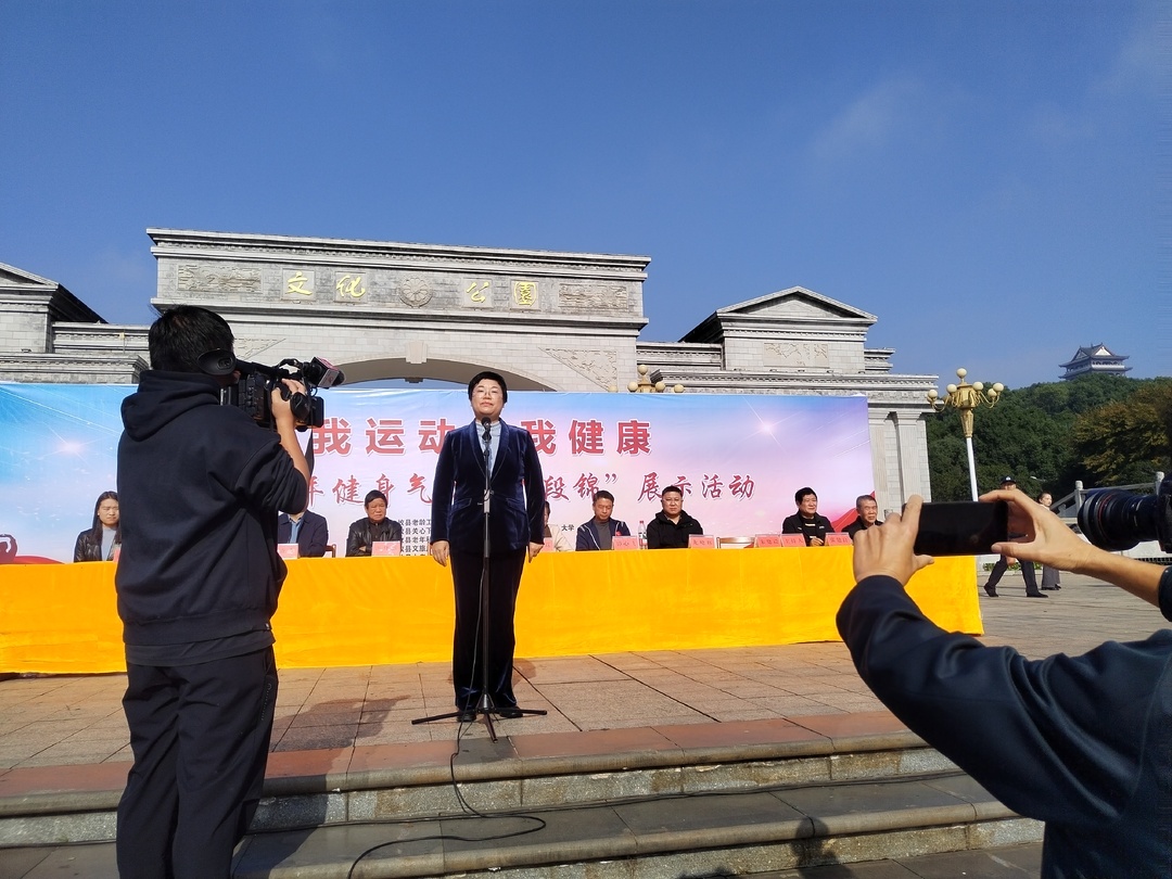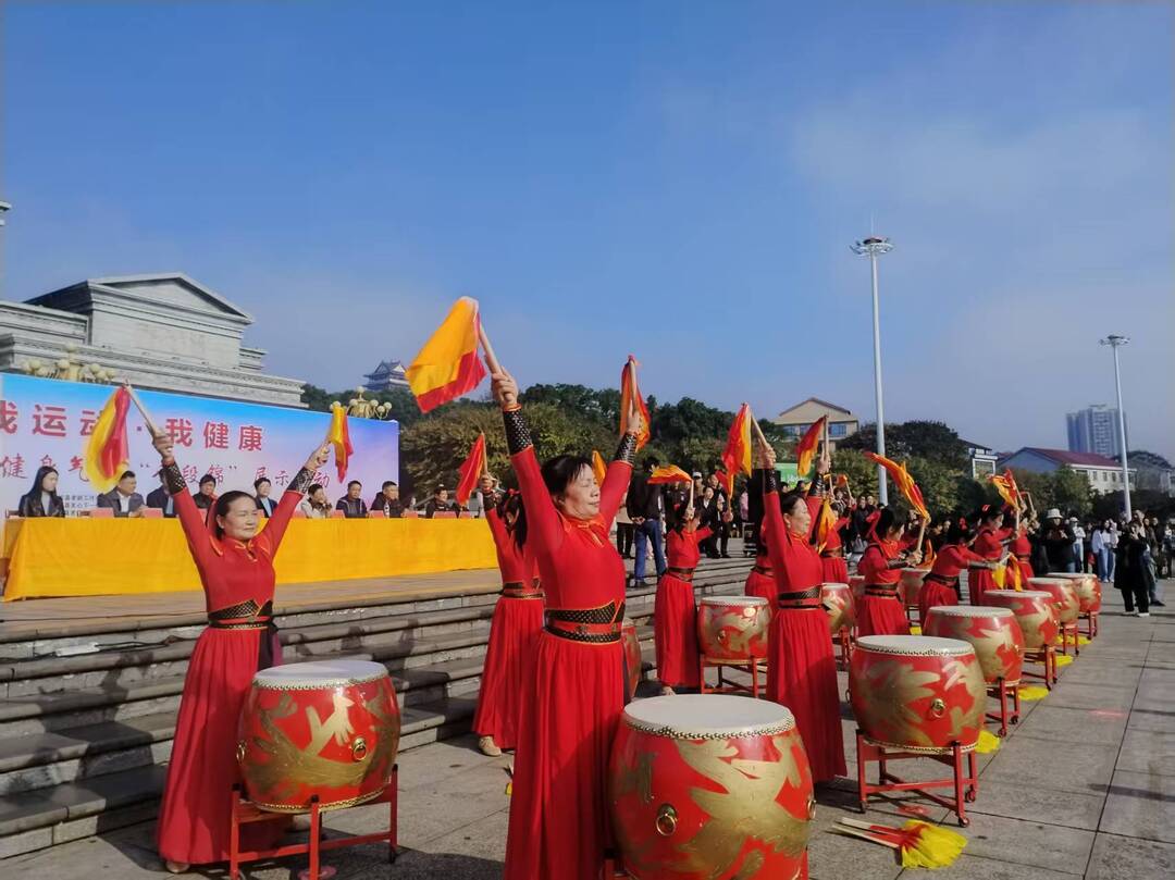 深秋的攸县,晨曦撕开薄雾,将金色的光辉洒在攸州公园的每一片树叶上。11月5日,由攸县老龄工作委员会主办,攸县关心下一代工作委员会、攸县老干部(老年)大学、攸县老年科技工作者协会、攸县老年体育协会、攸县文旅广体局承办。协办单位有攸县中老年人健康协会、攸县健身气功协会、攸县老干部(老年)大学气功系。汇聚着县、乡镇、街道、各部门单位领导、嘉宾、安保、交警、工作人员、融媒体记者和参加展示的达1500多人的队伍。在广阔气派的攸州公园广场,隆重举行的一场主题为“我运动,我健康”的“八段锦”健身气功大型集体展示活动,奏响了动人心扉的旋律,彰显了攸县中老年人的风采,书写着诗情画意的篇章。