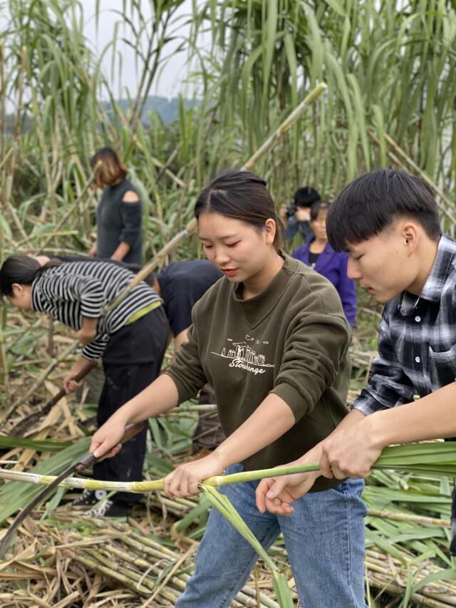 是的。当初,团队成员深一脚浅一脚、爬山越岭,来到麻阳红糖产地——麻阳张公坡村,与村民同吃同住同劳动。砍甘蔗、背甘蔗、轧甘蔗、熬糖汁、包装糖块,光是熬糖就有18道古法工序。师生们细细揣摩,深深体验,心手相应,从中感受劳动的快乐,感悟乡村振兴的真谛。