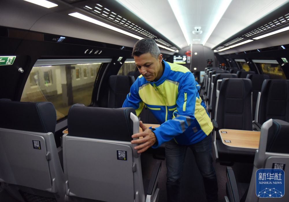 ↑11月3日,在奥地利维也纳,奥地利西部铁路公司员工在车厢内调整座椅靠背。