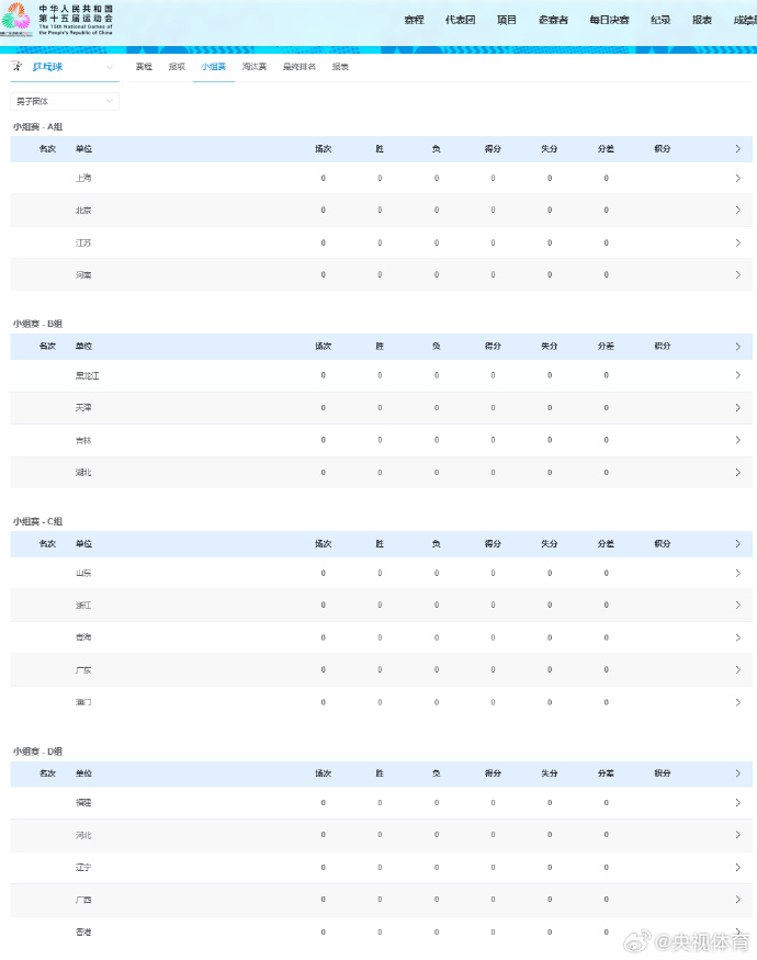 男团小组赛分组如下: