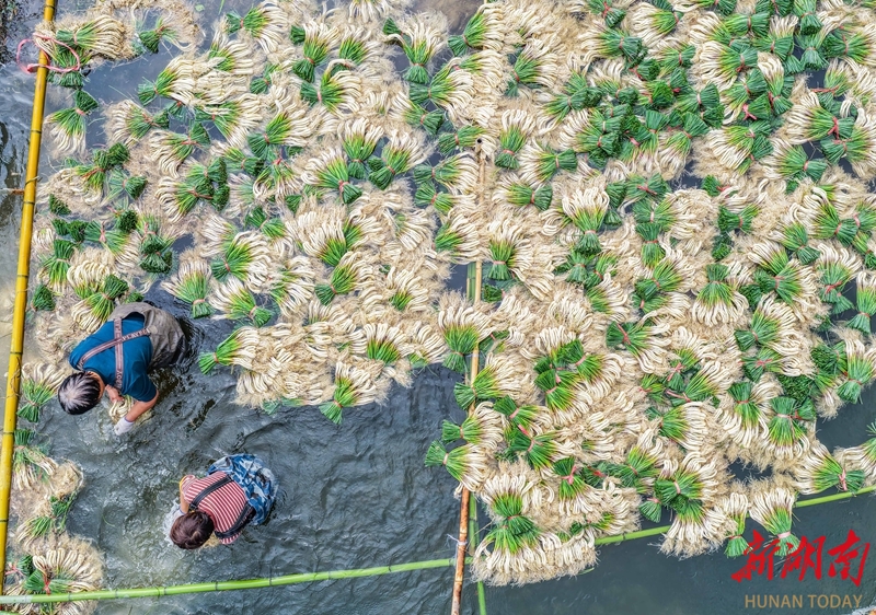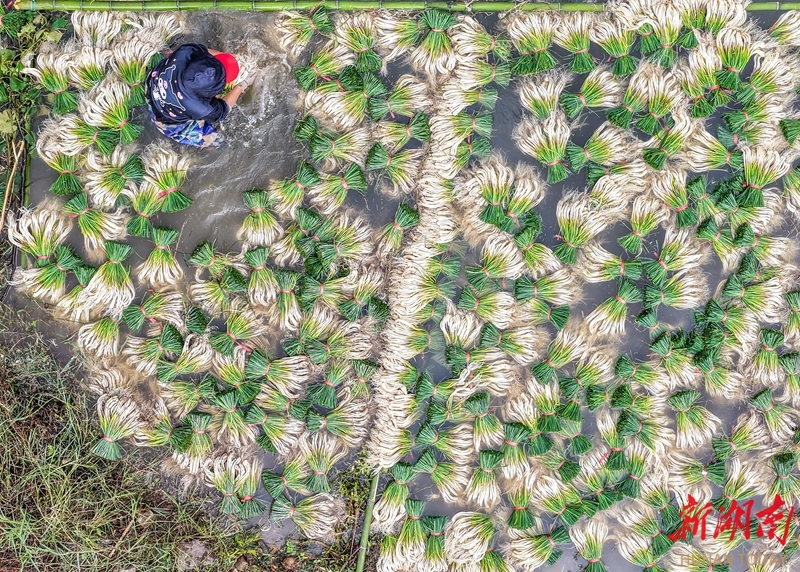 11月5日,道县营江街道车边社区,农民在清洗藠头。近年来,该县因地制宜引导农民规模化种植藠头,促进了农业增效、农民增收。蒋克青 摄(湖南图片库)