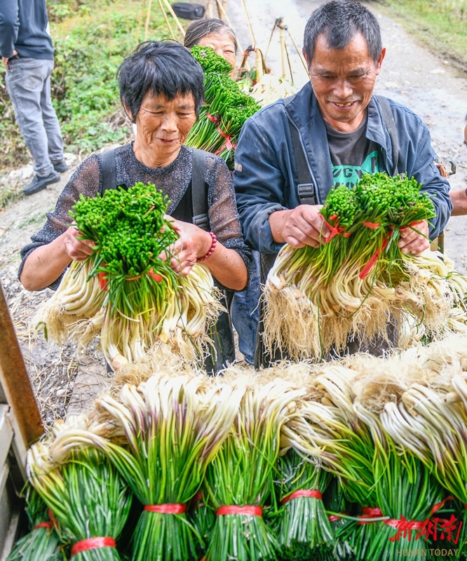 11月5日,道县营江街道车边社区,农民在装运藠头。近年来,该县因地制宜引导农民规模化种植藠头,促进了农业增效、农民增收。蒋克青 摄(湖南图片库)