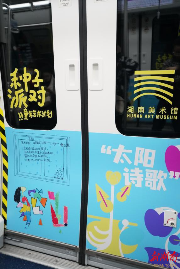 近日,不少搭乘长沙地铁的市民都直呼被车厢内浓郁的童话气息治愈,挤地铁的疲惫被一扫而空,取而代之的是为小朋友们的奇思妙想惊喜赞叹。太阳慈善助学基金会“山里娃的时间叙事”系列作品也在地铁4号线“种子派对”主题列车亮相。来自郴州、安化、湘潭、武冈等春灯计划项目点学校的乡村孩子们,用充满野趣与想象的童诗、童画装点了长沙市民与游客的通勤旅程。