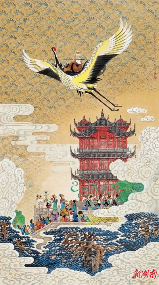 周令钊与陈若菊1984年合作的《白云黄鹤》彩墨画。