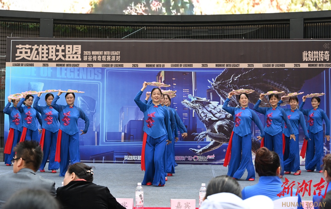 广场舞作为群众体育的创新实践,既提升了国民身体素质,也促进了社区和谐,培育了积极向上的社会风尚,成为健康中国建设中一道亮丽的风景线。活动中,来自长沙各社区的广场舞爱好者们身着盛装、伴着欢快旋律、踏着优美舞步以舞会友,用实际行动诠释了“只要热爱、就站上舞台,无畏年龄、舞出幸福”的广场舞精神。