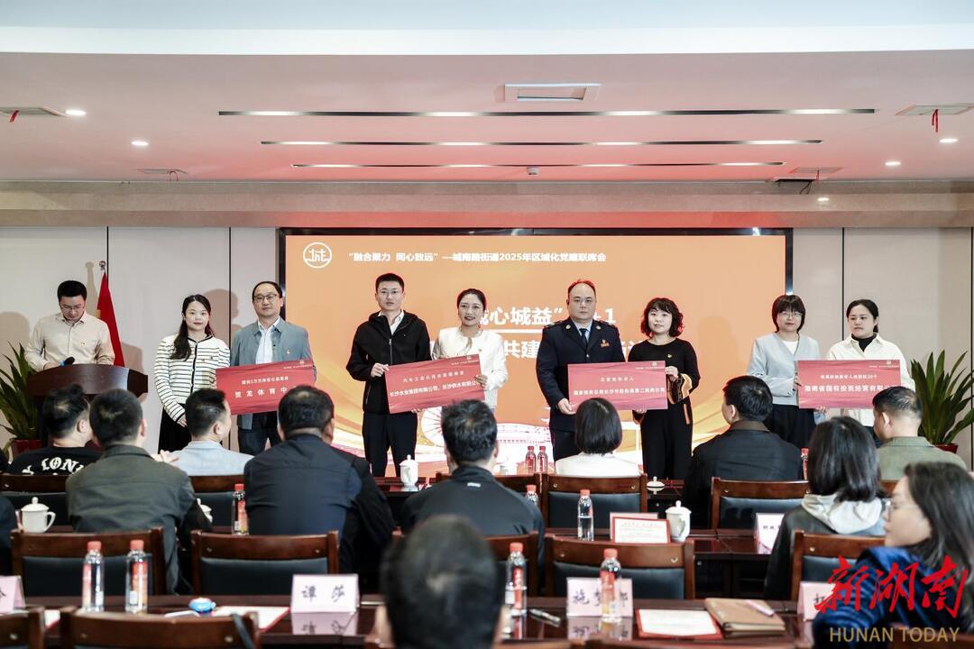 湖南省国有投资经营有限公司、国家税务总局长沙市税务局第二税务分局、贺龙体育中心、长沙水业集体有限公司、长沙民康医院、湖南腾顺保险销售服务有限公司、长沙市联成百货有限公司等多家党建联席单位现场认领了8类民生服务项目,一批群众关心期盼的“关键小事”迎来了暖心回应,会上,16家辖区企事业单位获得“区域化党建突出贡献单位”授牌。