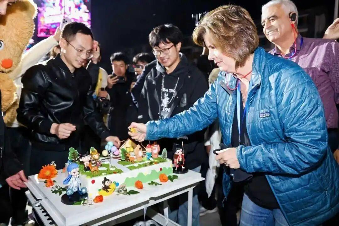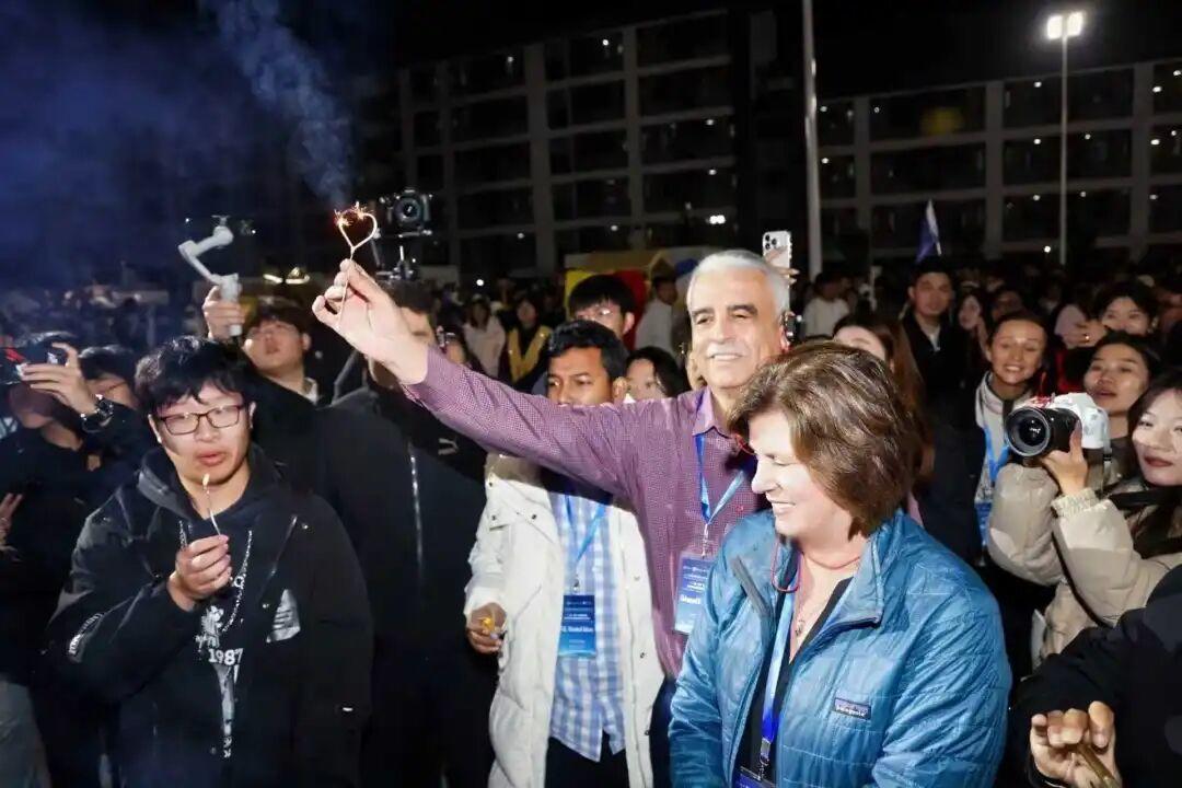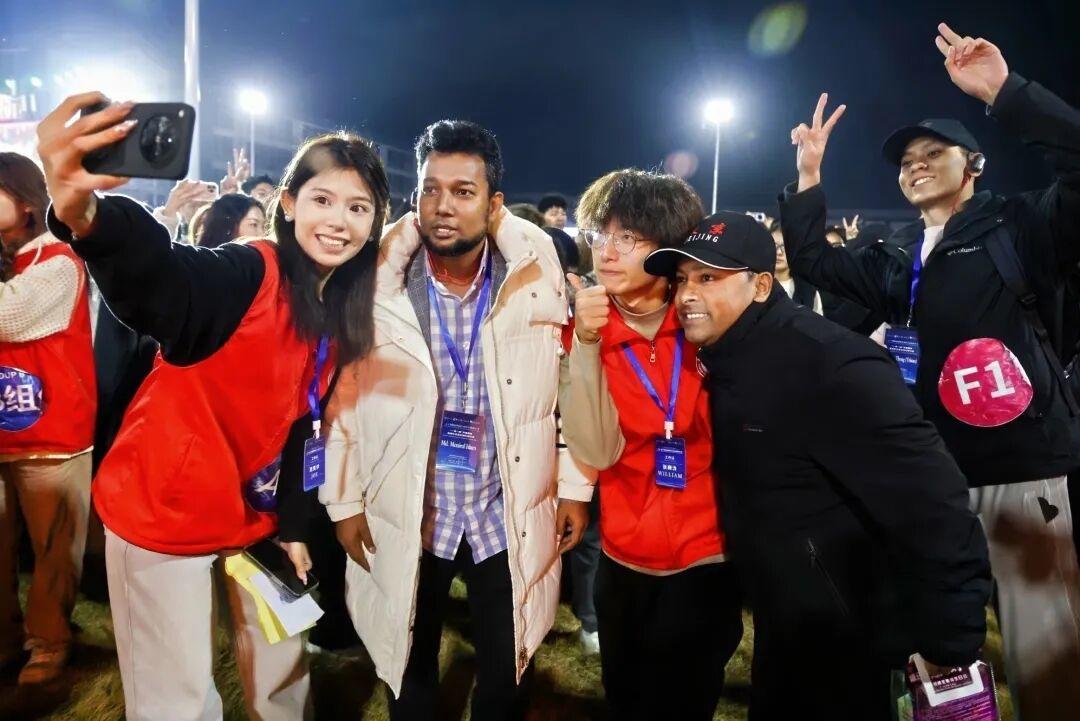 在当晚举办的2025书院篝火文化节暨“爱在书院”师生集体生日会第36期“谁还不是个孩子呢”活动现场,全体学员沉浸式感受书院家文化氛围。主办方以贴心细节设计打破语言与文化隔阂,让各国代表在异国他乡感受到家人般的温暖,生动诠释了学校鼓励学生“友好地为所欲为,放肆地野蛮成长”的校园文化。来自巴勒斯坦的Mohammad matar Mustafa在篝火晚会结束后激动地告诉志愿者,“这是一场非常精彩的活动,我非常喜欢。有美妙的音乐、现场的人群,还有互动环节。真的是一次很棒的活动,所有的学生都以极为美好的方式参与其中。这是梦想大学里的活动,感谢你们举办,也感谢你们的邀请。”