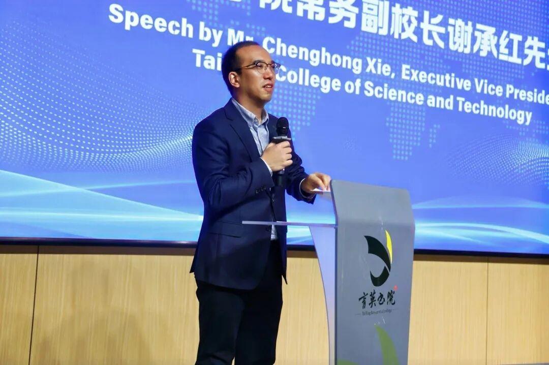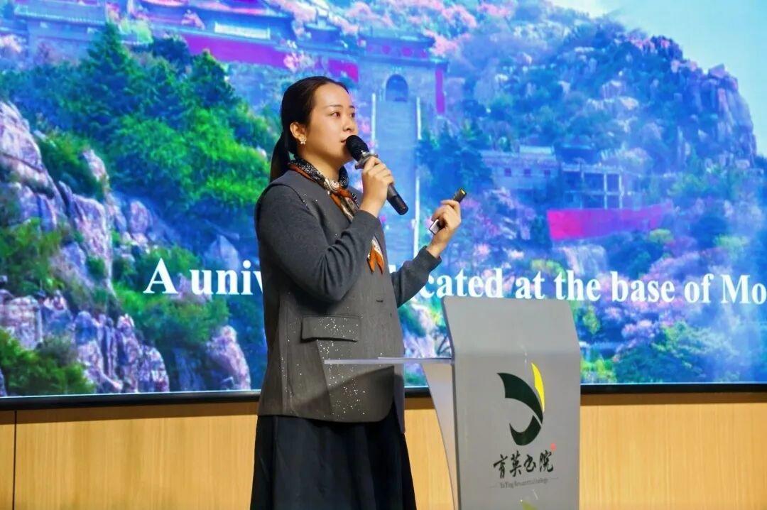 参观学校游泳馆、电影院、图书馆、工程实训中心、育英书院后,学校为全体学员举办见面欢迎会。泰山科技学院常务副校长谢承红致欢迎辞,他引用孔子“有朋自远方来,不亦乐乎?”表达对来宾的欢迎,并介绍了学校结合泰山文化及新教育理念所做的育人探索,祝愿大家在泰科度过美好时光。蓬莱科幻学院副院长宋亚洁以全英文方式,介绍学校发展历程、育人理念、办学特色、校园文化、办学成果和发展愿景,她还特别呈现了学校在国际化办学实践中的探索,介绍了学校留学生来校学习的政策,欢迎21个“一带一路”共建国家及世界各国的学生、友人到泰山科技学院留学、访学。