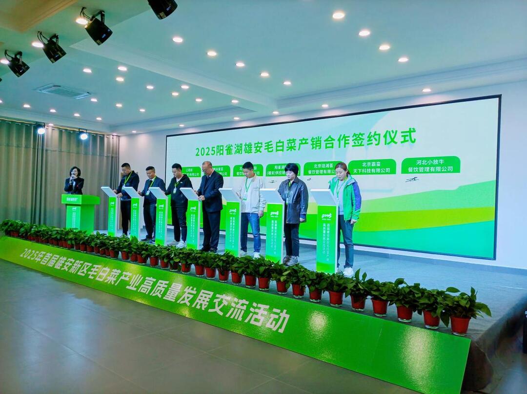 本次活动以“白菜‘新’动·雄安‘鲜’行”为主题,由湖南省阳雀湖农业科技有限公司和河北雄安阳雀湖西里农业科技有限公司共同主办。活动现场,政府领导、农业专家、企业代表及媒体嘉宾齐聚一堂,共同探讨雄安毛白菜产业高质量发展路径,推动农业与文旅深度融合,为乡村振兴注入新动能。