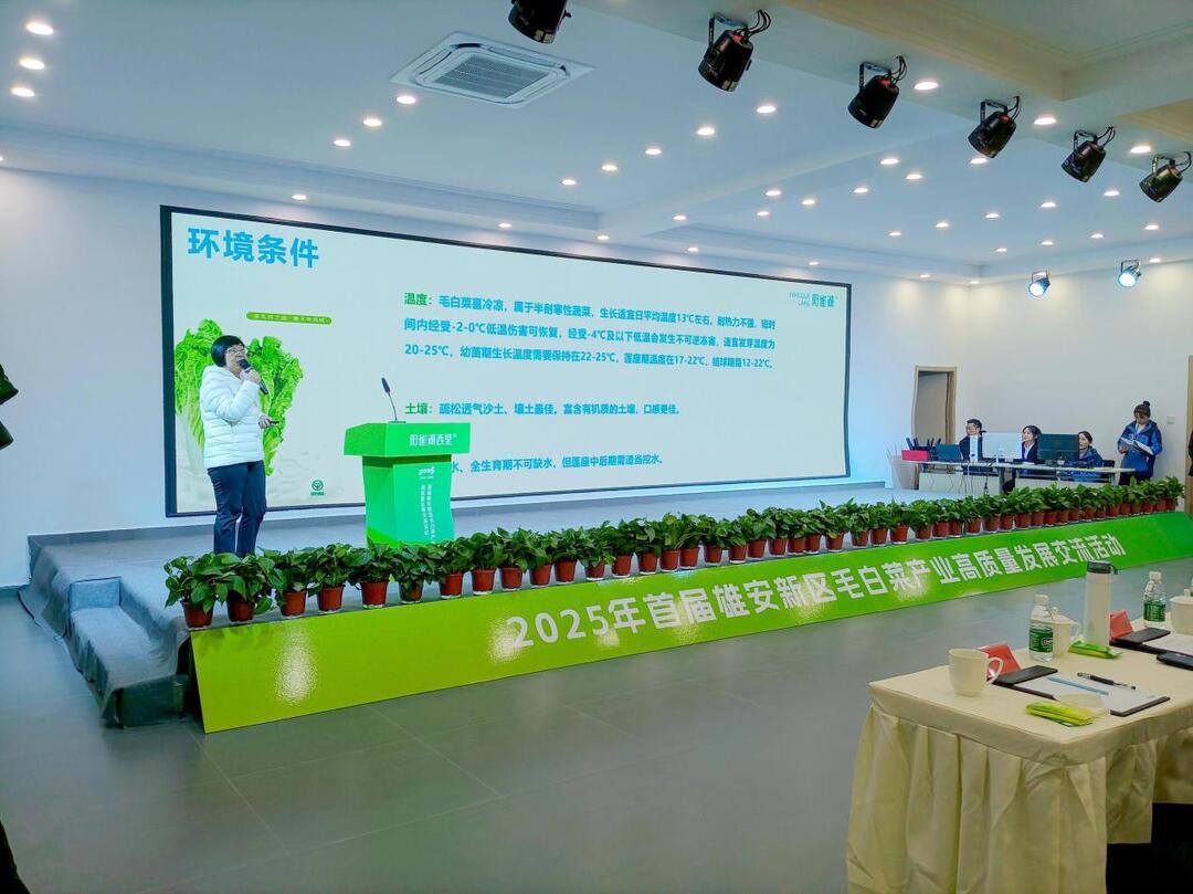 在产业标准引领环节,北京市农林科学院蔬菜研究所育种部首席专家张凤兰教授现场发布了《雄安毛白菜标准化种植技术规范》。作为“全国蔬菜质量标准中心标准化基地”,阳雀湖西里基地以科技赋能产业,对雄安毛白菜这一传统品种进行了为期三年的系统性提纯复壮与品质优化。产品已荣获国家绿色食品A级认证,其清甜软糯的卓越口感深受市场青睐。
