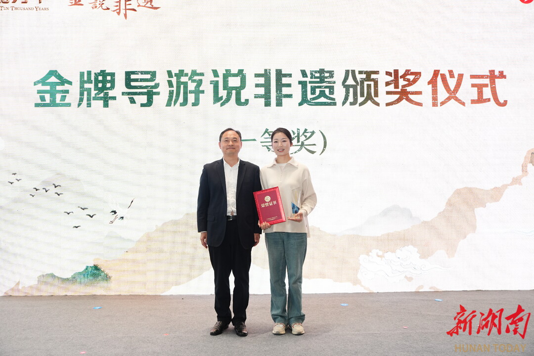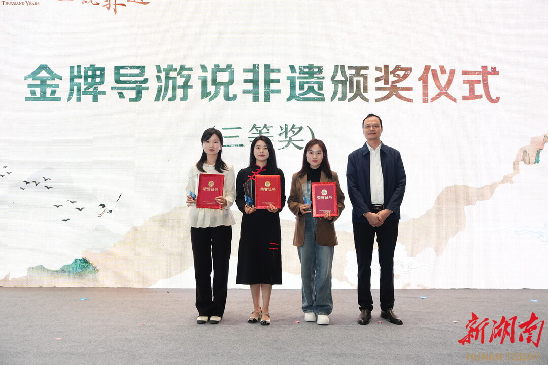 活动现场,主办方为刘芳、刘璇、洪盈等“金牌导游说非遗”活动的优秀创作者颁奖。