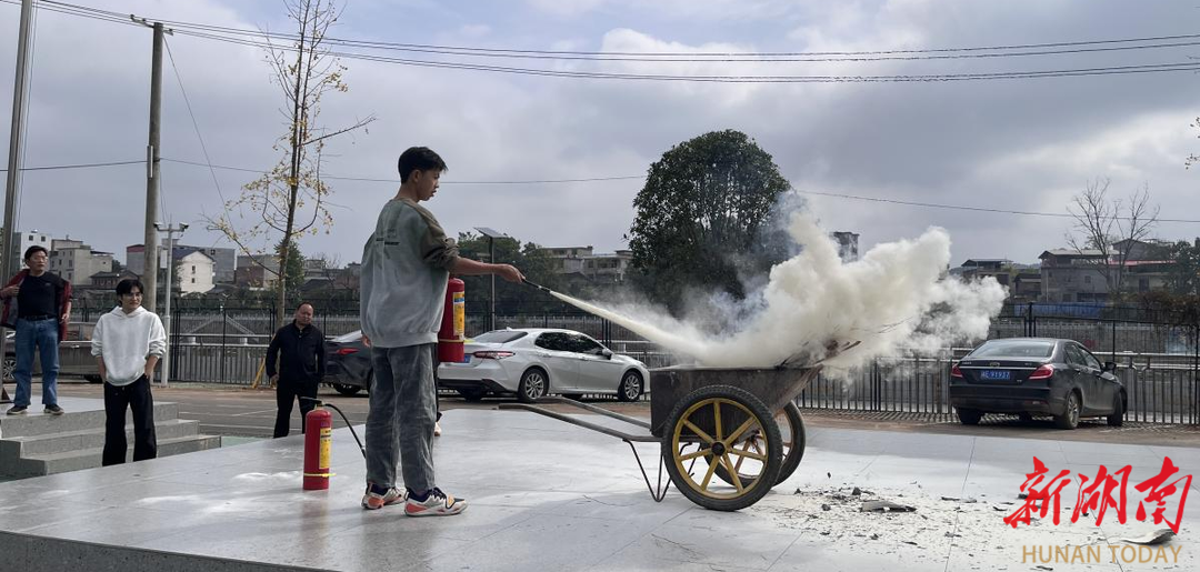 集合完毕后,金称市镇中学的陈海林主任现场为同学们讲解并演示了干粉灭火器的正确使用方法,通过“提、拔、握、压”四个步骤的清晰讲解和现场灭火实操,让抽象的安全知识变成了具体的实战技能,学生代表和教职工还亲自上阵,进行了灭火体验。