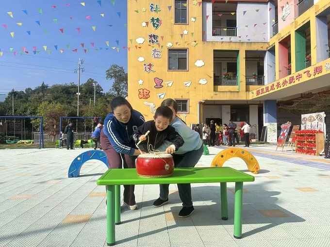 科教新报·新湖南客户端讯(通讯员 陈思洁 曹金霞)“妈妈快看!这个铁环和你说的‘小时候的玩具’一模一样!”11月6日,石门县白云镇中心幼儿园的丞丞小朋友一进校门,就拉着妈妈冲向滚铁环区域。一场以“8090时光漫游·亲子运动忆童年”为主题的怀旧亲子运动会在此温馨启幕。全体师生及家长齐聚操场,红绿色气球与复古标语相映成趣,在滚铁环、踢毽子等经典游戏的互动中,共赴一场跨越时代的童年之约,让老游戏迸发新活力,让亲子情感在时光里升温。