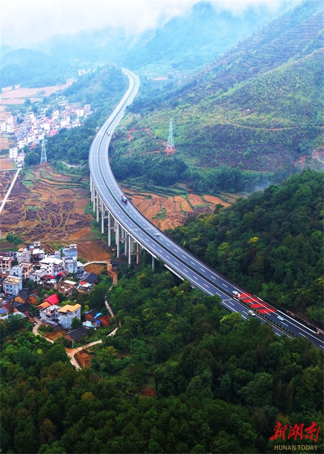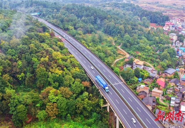 The photo, taken on November 3, shows vehicles running along the Tushi Town section of Xiamen-Chengdu Expressway in Lanshan County. In recent years, the county authority has intensified efforts to develop transportation infrastructure, optimized the layout of urban and rural roads, and developed a multi-dimensional transport network connecting expressways with national highways, provincial highways, and rural roads. These initiatives provide robust transportation support for high-quality economic development. (Photo/Huang Chuntao)