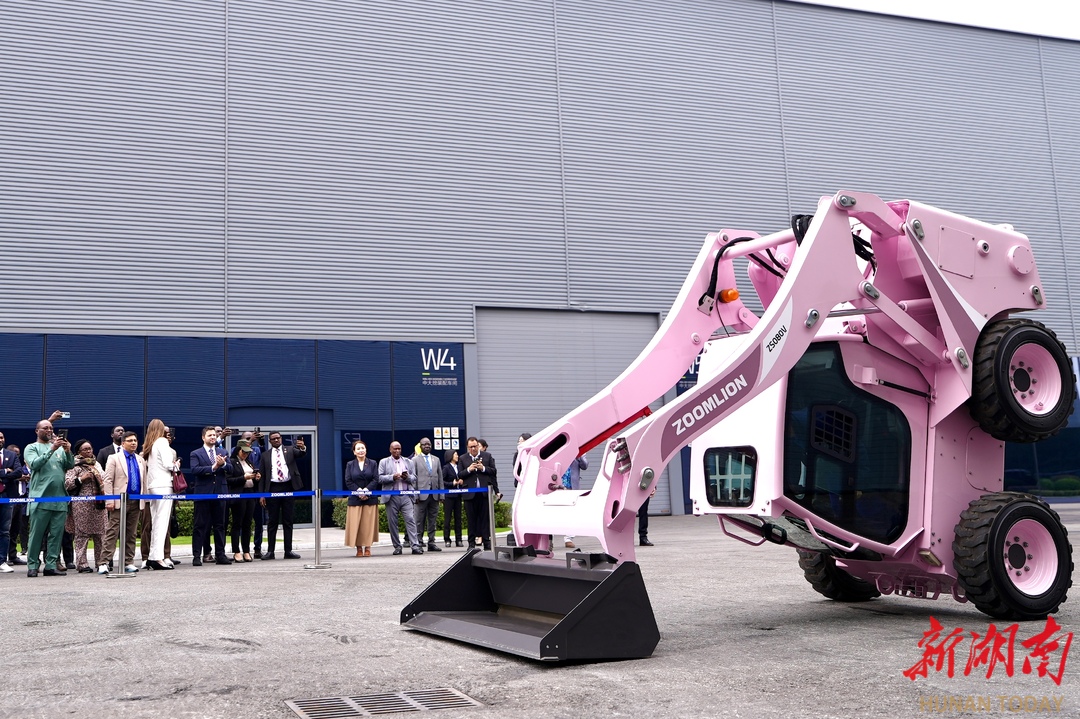 走进中联重科,工作人员操作挖掘机展示了倒立旋转、水杯叠摞、穿针引线等高难度“绝活”,彰显了设备的卓越性能与技术人员的精湛水平,引得国际友人连连鼓掌喝彩。结束参观后,多国代表与中联重科相关负责人展开了热络交流。中联重科阿尔及利亚籍员工宓名善表示:“希望通过这次展示,让来宾看到长沙在科技领域的创新实力,共商未来合作机遇。”