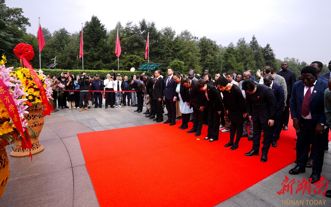 在韶山,代表团参观了毛泽东同志故居,4位国际友人代表敬献了花篮。湖南日报全媒体记者 童臻熙 摄