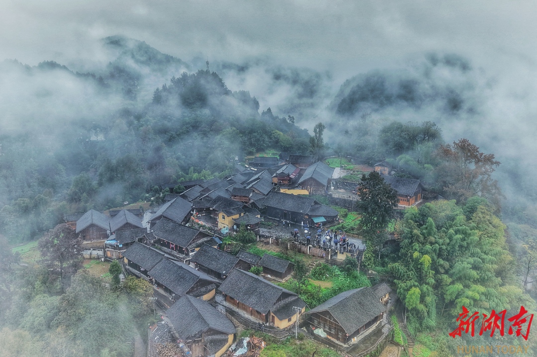 航拍下的湖南湘西十八洞村:云雾缭绕,苗寨镶嵌于青山翠谷之间。湖南日报全媒体记者 童臻熙 摄