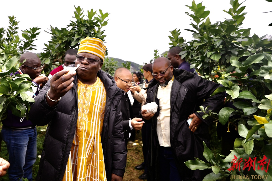 代表团在菖蒲塘村采摘柚子并品尝,了解果蔬种植技术。湖南日报全媒体记者 童臻熙 摄