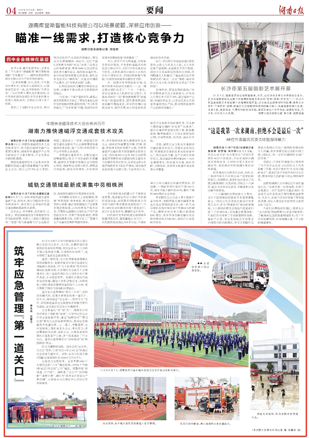 应急装备从“有”到“优”。湖南充分利用深厚的工程机械“家底”,引导和支持企业开展应急装备研发,通过“揭榜挂帅”“赛马比拼”激发企业的创新积极性,推动应急装备技术快速发展。三一重工、中联重科、山河智能等工程机械龙头企业,率先发力,形成覆盖防汛排涝、森林灭火、水域救援等场景的应急装备产业链,多个装备填补了行业空白。基层应急管理正从“经验驱动”向“科技赋能”转变。