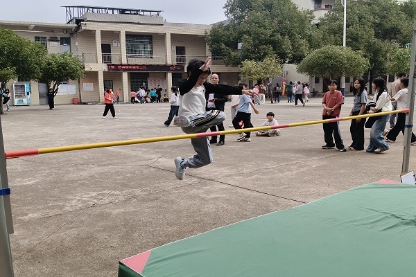 随着比赛正式开始,整个操场瞬间成为欢乐与拼搏的海洋。径赛场上,从50米的全力冲刺,到200米的弯道角逐,再到800米的耐力考验,每一位运动员都拼尽全力,展现了不凡的速度与坚韧的意志。田赛区域同样精彩纷呈:跳高选手轻盈跃杆,不断挑战新高度;立定跳远场地一次次迸发瞬间力量;实心球划出有力弧线,引得观众阵阵喝彩;一分钟跳绳现场节奏紧凑,彩绳翻飞,展现了选手们的灵巧与耐力。