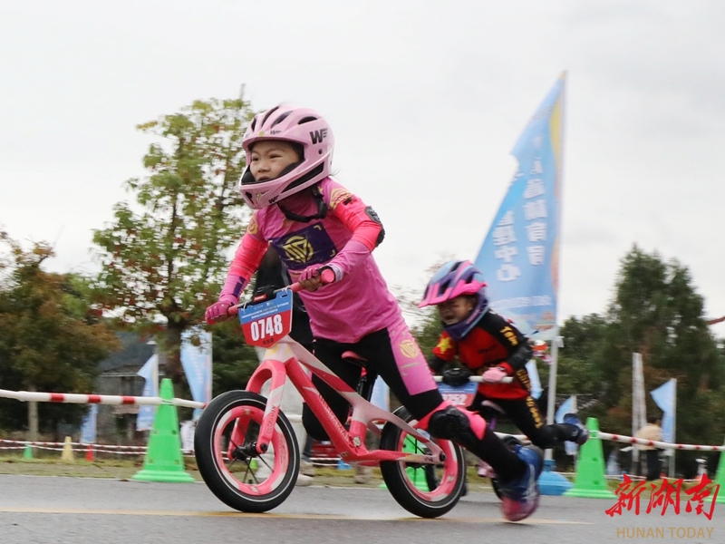 11月8日,第六届“大美里耶・云端上的骑行”自行车邀请赛儿童平衡车挑战赛在龙山县里耶镇举行。赛事吸引百余位萌娃参赛,小选手们在专业赛道上竞速角逐,享受运动的快乐。俞采华 胡荣春 摄影报道(湖南图片库)