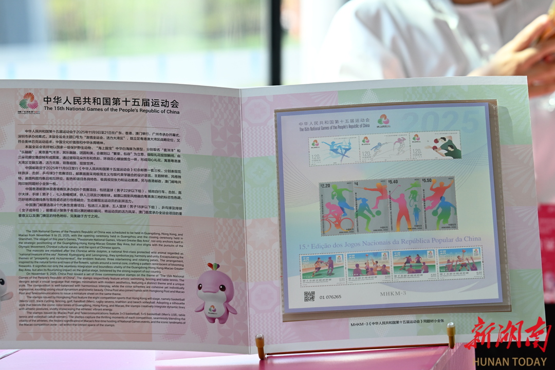 新湖南客户端11月9日讯(特派记者 胡旻)11月9日上午,为庆祝中华人民共和国第十五届运动会开幕,以“十五运燃情 粤港澳同邮”为主题的《中华人民共和国第十五届运动会》纪念邮票首发仪式在广州塔举行。同步发行《中华人民共和国第十五届运动会》纪念邮票一套3枚,并首次同步发行内地、香港、澳门三地小全张。