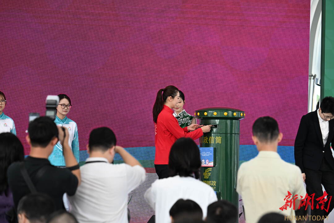 活动最后,广东运动员代表花样游泳世界冠军陈晓君、香港邮政署助理署长吴康瑶、澳门设计师欧俊轩读祝福语,随后10位志愿者共同寄出对“十五运”的祝福语明信片,为活动画上了温暖的句号。