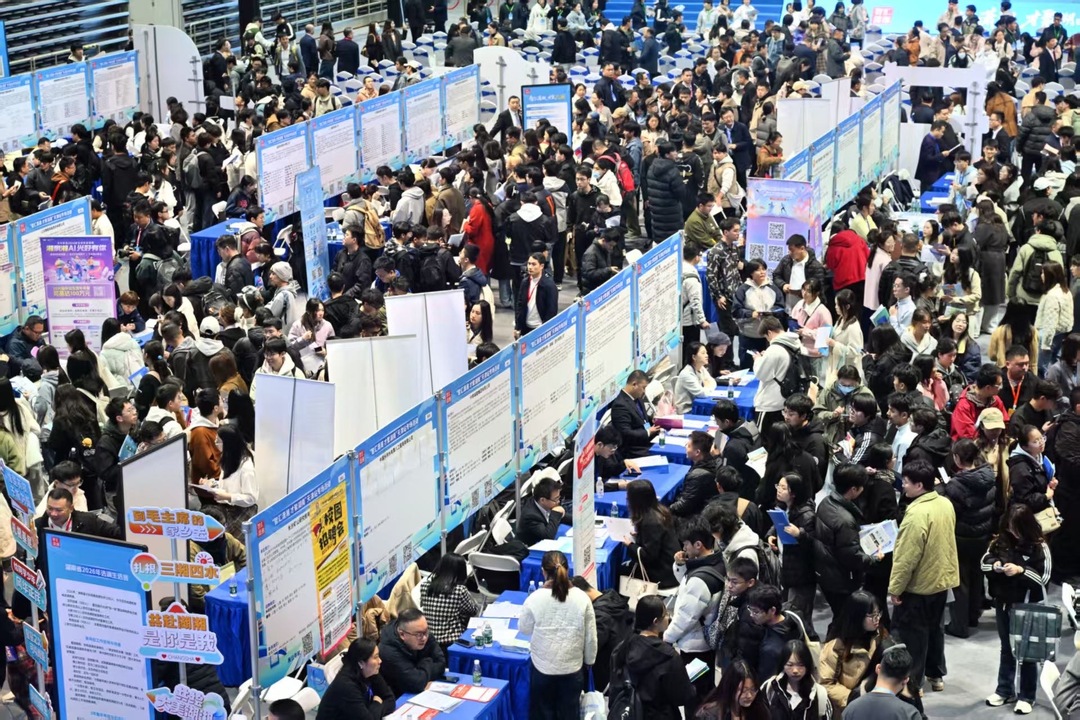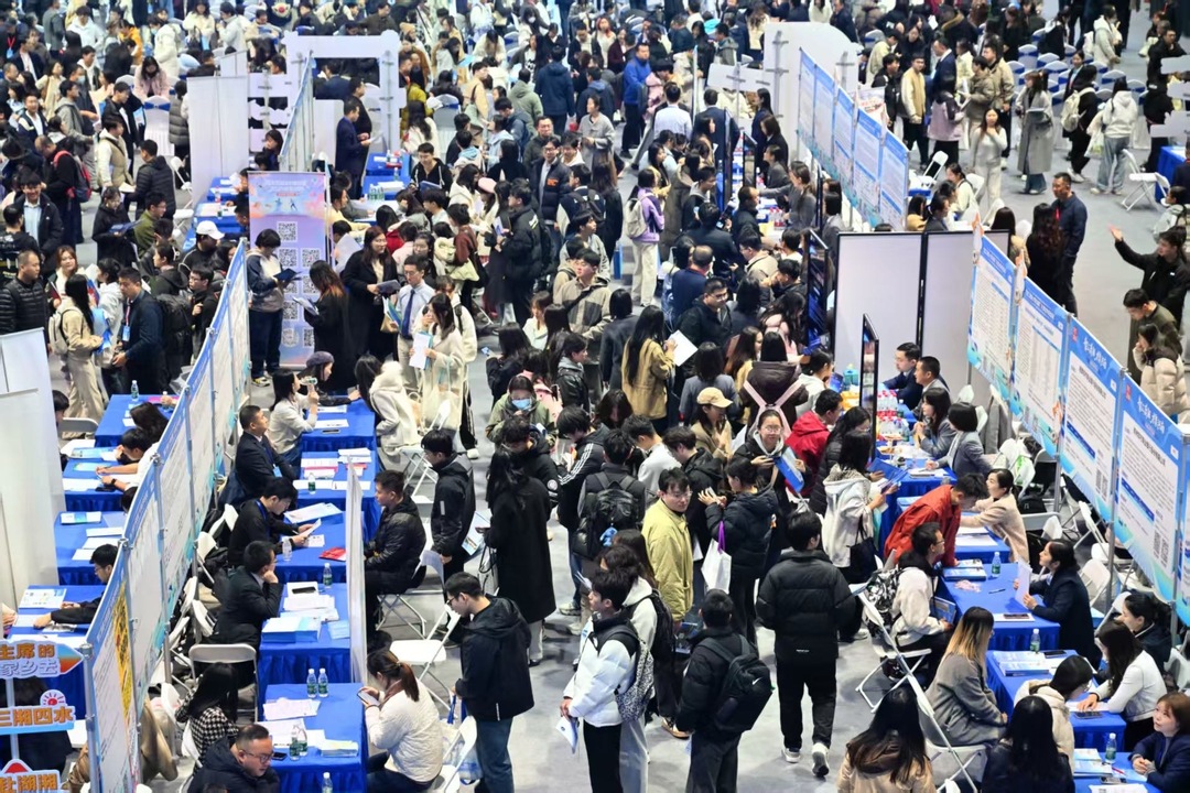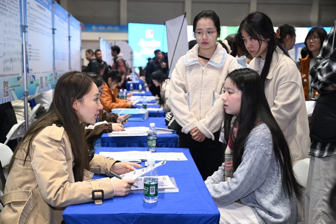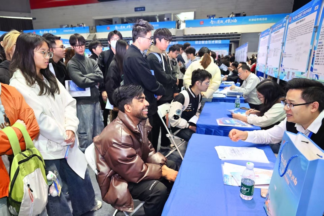 11月9日,“智汇潇湘 才聚湖南”天津站专场招聘活动在南开大学举行,一批批学子带着简历与梦想涌入会场,与湖南名企HR热烈交流。湖南日报全媒体记者 郭立亮 摄