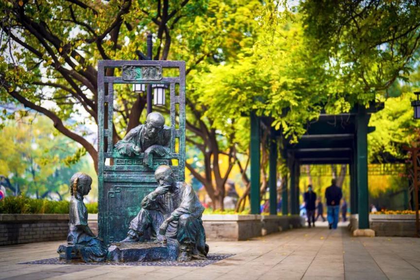 作为历史文化展示带的核心节点,皇城根遗址公园北接南锣鼓巷烟火,南连王府井繁华,毗邻故宫红墙,串联澄清闸遗址、嵩祝寺及北大红楼等历史印记,形成“一步一史、一景一韵”的文化探访路线。循着新添的导览牌和路线指引,家长带着孩子漫步游览,赏景学史,一举两得。