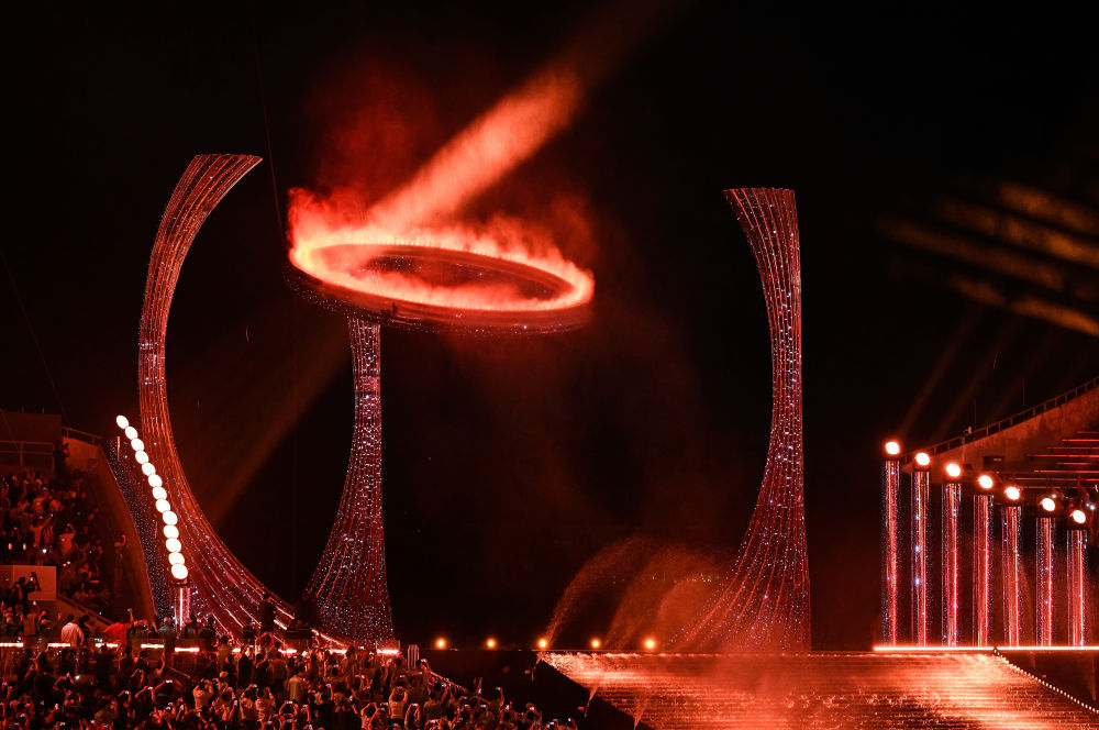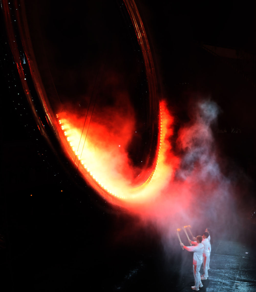 这是在开幕式现场拍摄的主火炬。新华社记者 李鑫 摄