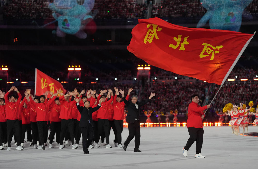 河北省体育代表团在入场仪式上。新华社记者 杜宇 摄