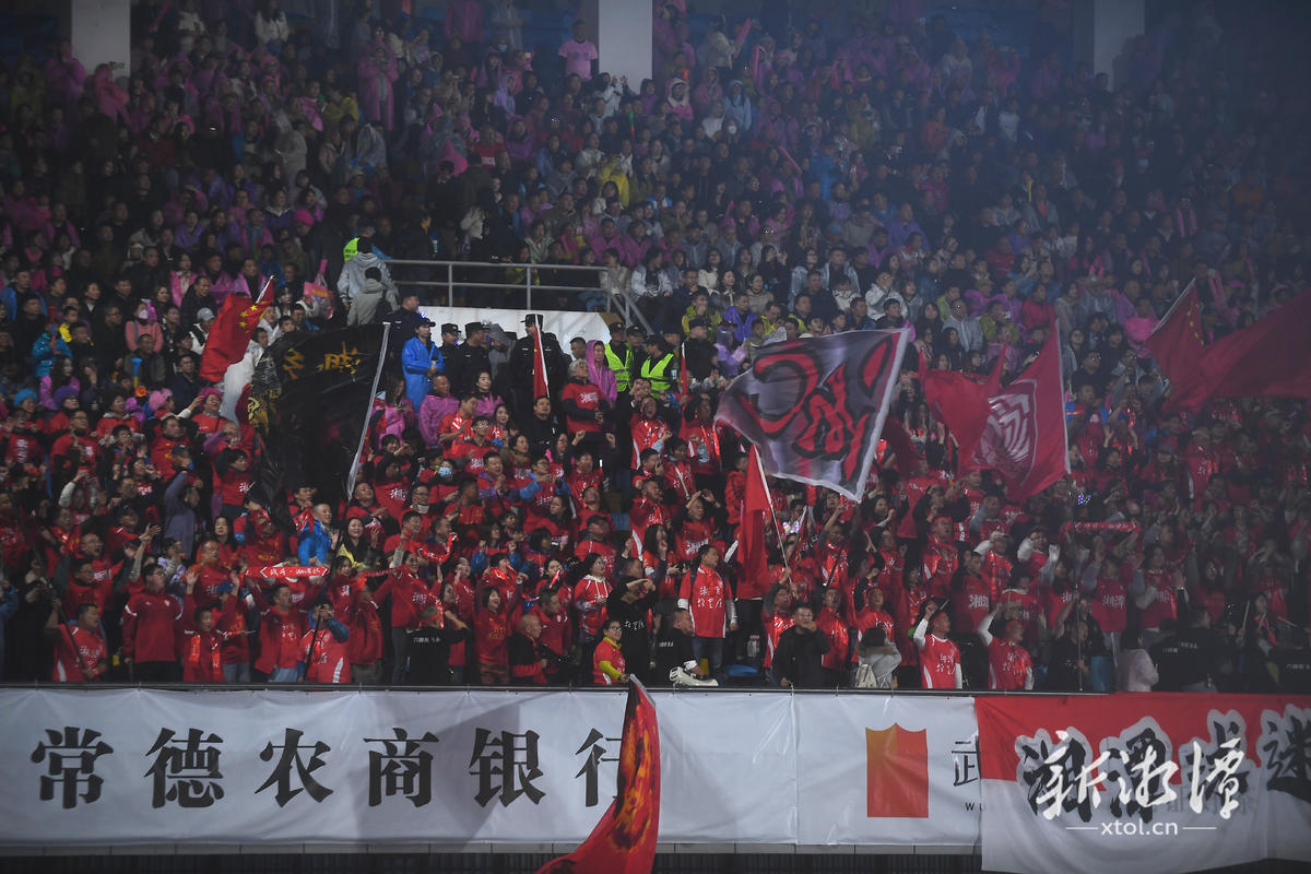 尽管球队失利,但数百名冒着风雨远赴常德为球队助威的湘潭球迷,成为赛场一道温暖的风景。整场比赛中,他们的呐喊声从未停歇。比赛结束后,面对拼尽全力的将士们,球迷们送上了掌声和“战斗!湘潭队!”“湘潭加油!”“拼到底,我们永远支持!”的鼓励口号。