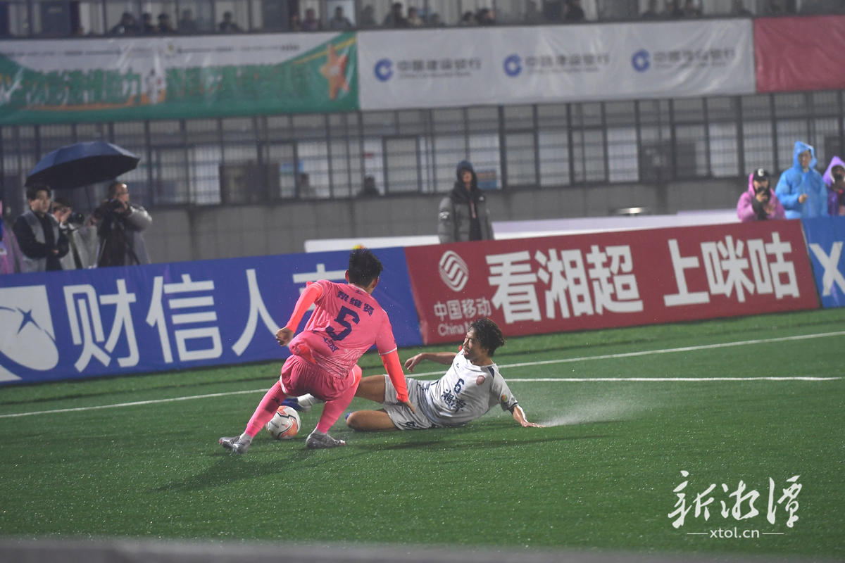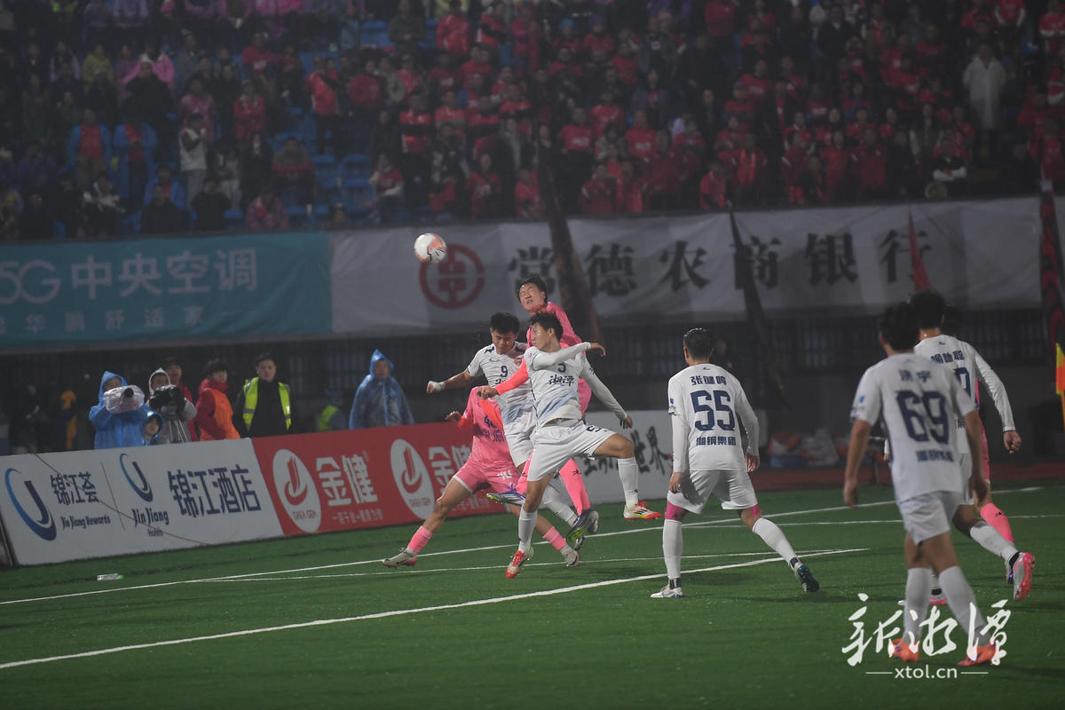 湖南日报·新湖南客户端11月10日讯(李涛 罗韬)11月9日,2025湘超联赛第九轮一场焦点战在常德市体育运动中心上演。在蒙蒙细雨中,客场作战的湘潭队拼尽全力,仍以0∶2的比分负于整体实力明显强于自己的常德队,未能延续近三轮连续拿分的势头。尽管输球,但湘潭球员拼搏到最后一分钟的战斗精神,还是赢得了现场球迷的掌声。