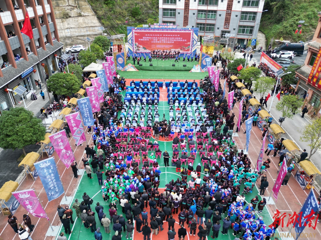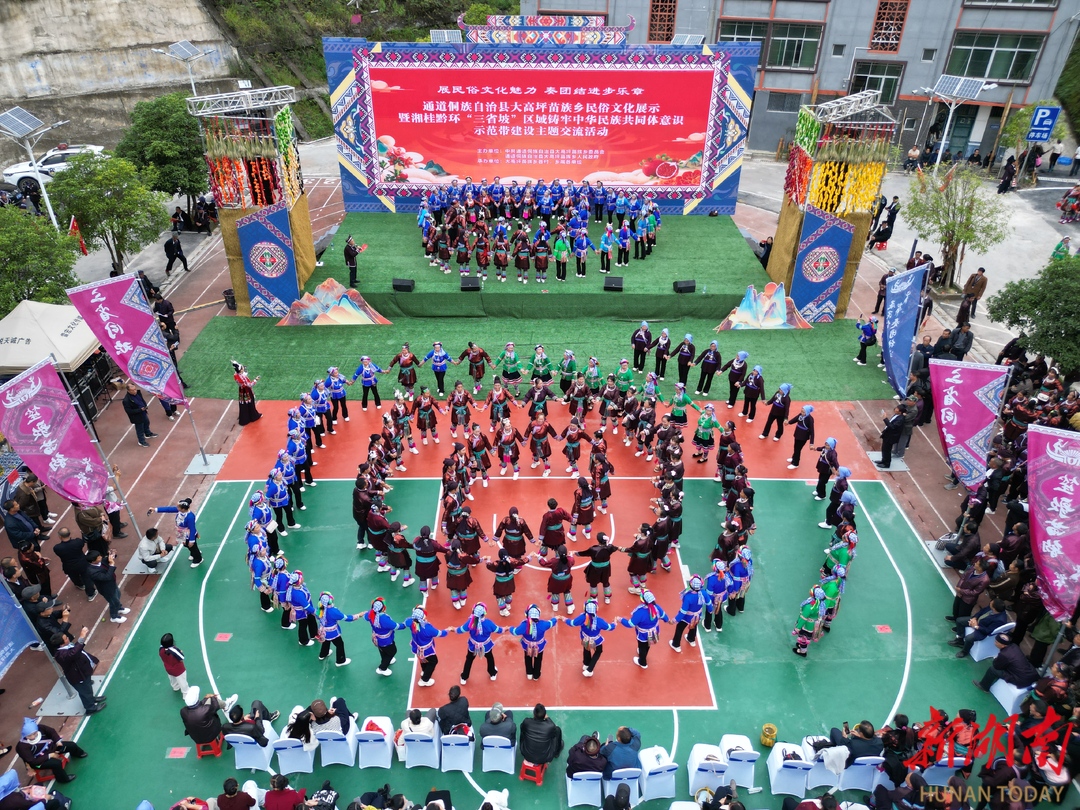 湖南日报·新湖南客户端11月10日讯(通讯员:石世忠 宋姗虹)苗乡报喜,大地欢笑。11月6日,通道侗族自治县大高坪苗族乡举行民俗文化展示暨湘桂黔环“三省坡”区域铸牢中华民族共同体意识示范带建设主题交流活动,全乡各族人民群众与社会各界嘉宾欢聚一堂,载歌载舞、共襄盛事。