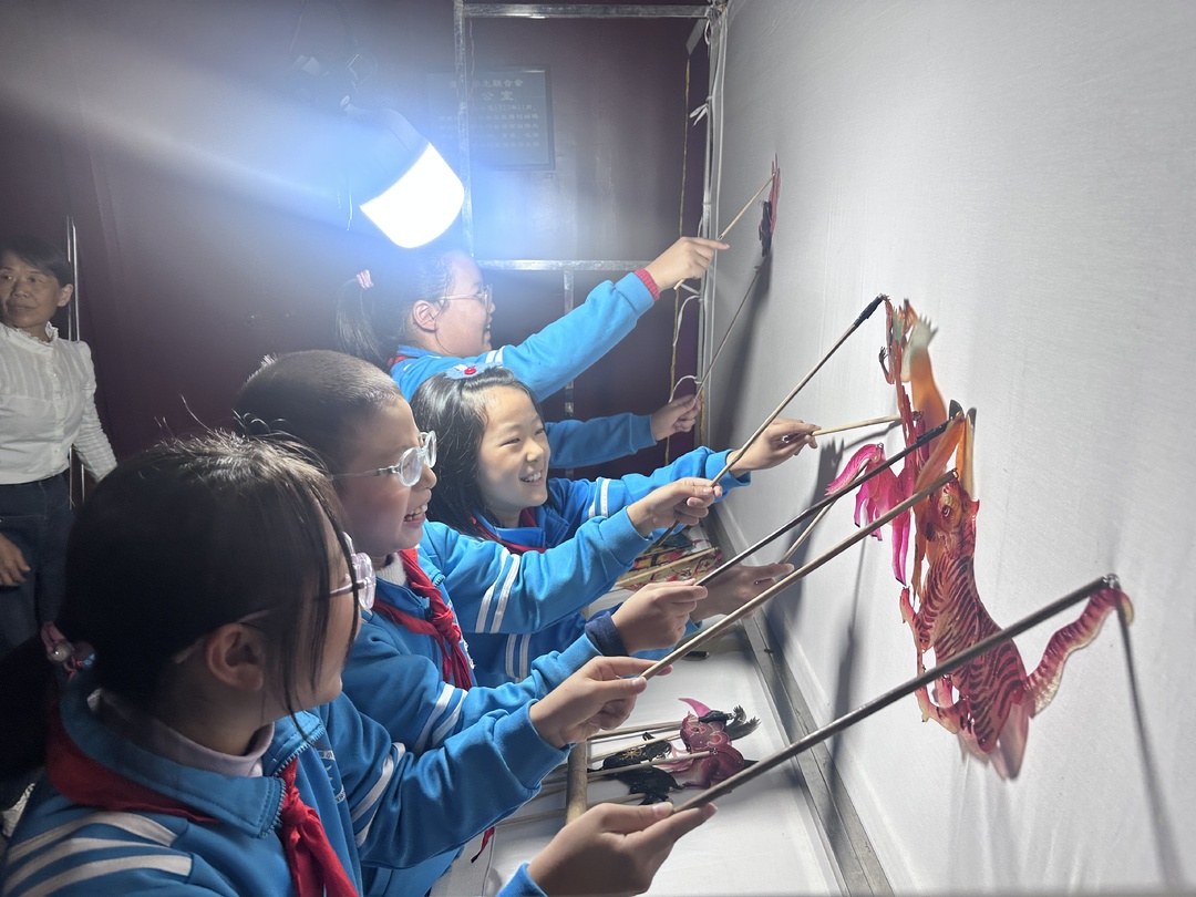 活动伊始,古朴庄重的自修大学旧址内,一方洁白的幕布、几盏明亮的灯光,瞬间吸引了所有孩子的目光。演出开始前,主持人提出了第一个问题:“同学们,有谁知道什么是皮影戏吗?”话音刚落,一只只小手便争先恐后地高高举起。“是用皮做的小人在布后面动!”“是影子戏!”“我爷爷说过,是中国的老动画片!”……孩子们充满童真而又贴近本质的回答,展现了他们对这一传统艺术形式的初步认知,也迅速活跃了现场气氛,拉开了此次光影盛宴的序幕。