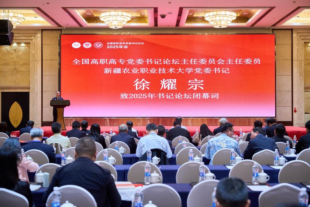 新疆农业职业技术大学党委书记徐耀宗当选为全国高职高专党委书记论坛主任委员会主任委员,并致闭幕词。