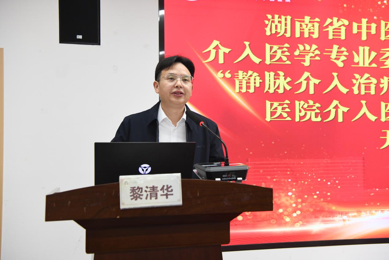活动伊始,院长黎清华向出席活动的各位领导、专家致以热烈欢迎与衷心感谢。他表示,医院将以此次学术交流会为重要契机,为科研教学创新、人才梯队培育、特色学科建设注入内生动力,全力推动介入医学科向精准化、规范化高质量发展。全面提升区域介入诊疗与综合医疗技术水平,以更优质的医疗服务切实守护宁乡市及周边地区群众的生命健康。