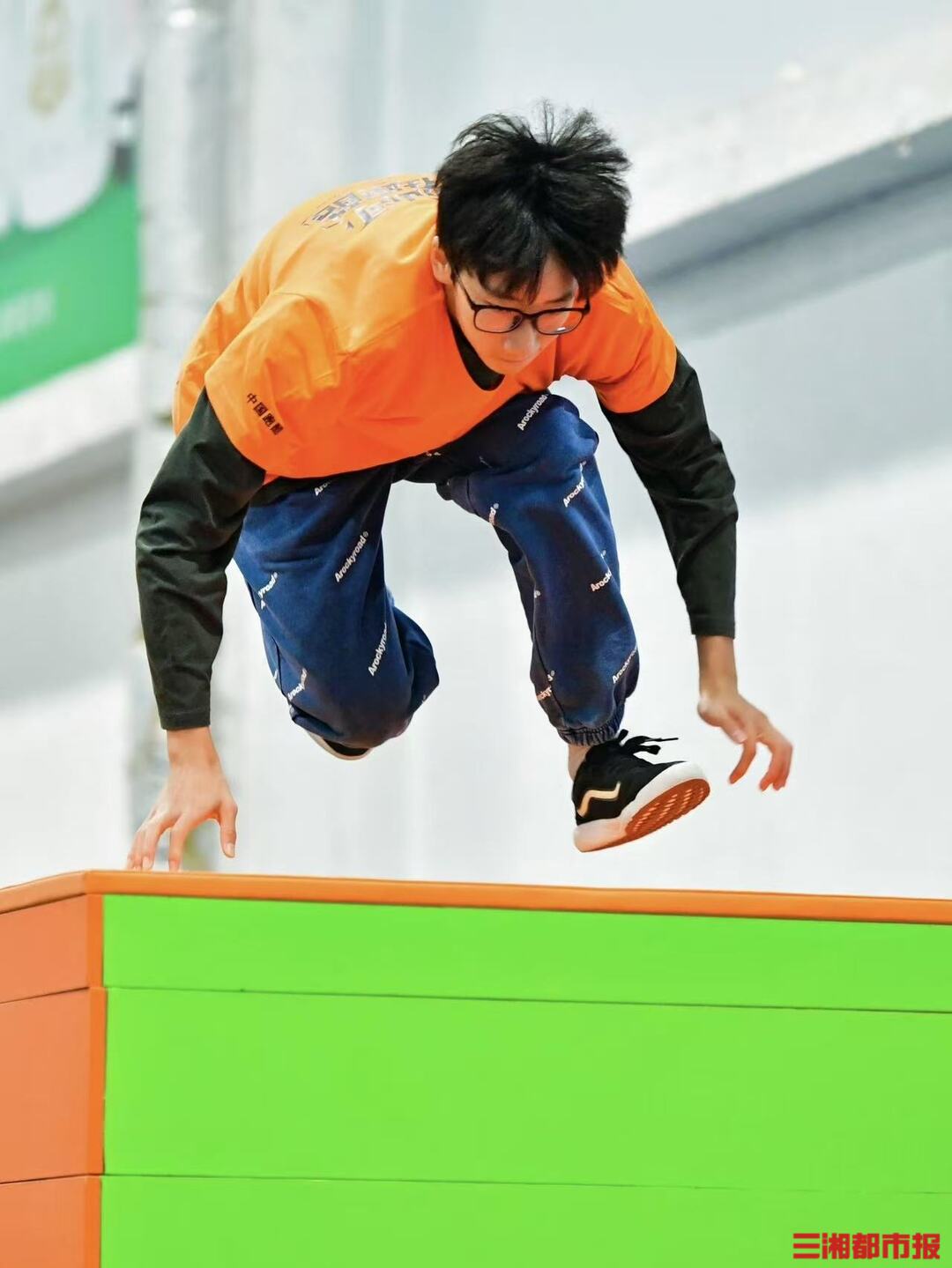 (张育嘉参加2025年全国青少年跑酷锦标赛。受访者供图)